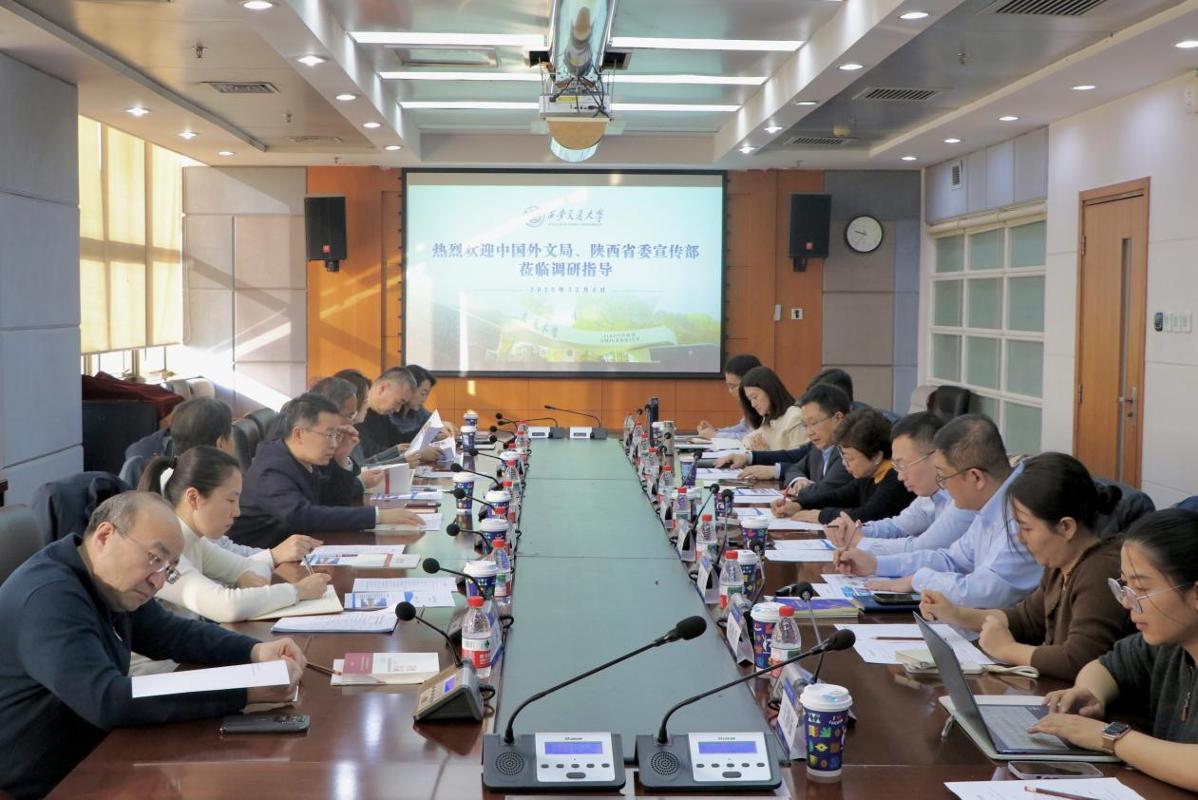 近日,中国外文局与中共陕西省委宣传部调研西安交通大学国际传播相关工作。中国外文局副总编辑、中国对外书刊出版发行中心主任陈实,中国对外书刊出版发行中心副主任董彦、事业发展部主任时光,中共陕西省委宣传部副部长单舒平,对外宣传处处长王战军、副处长梁冰淼,陕西国际传播中心主任王冬,西安交大党委常委、宣传部部长、统战部部长成进,宣传部副部长刘昱含,91视频